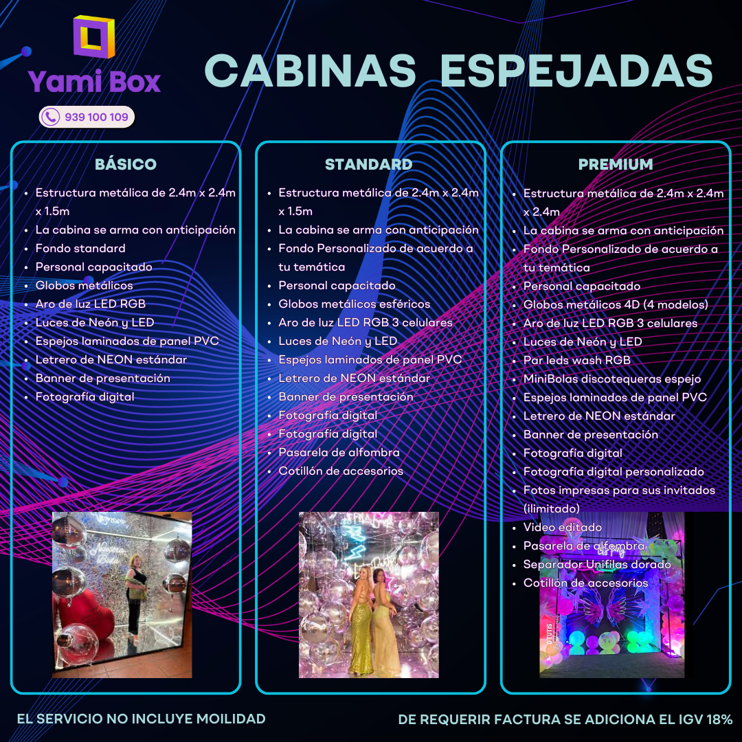 Yami Box ofrece una experiencia fotográfica única y divertida a través de cabinas espejadas interactivas y temáticas, ideales para todo tipo de celebraciones: