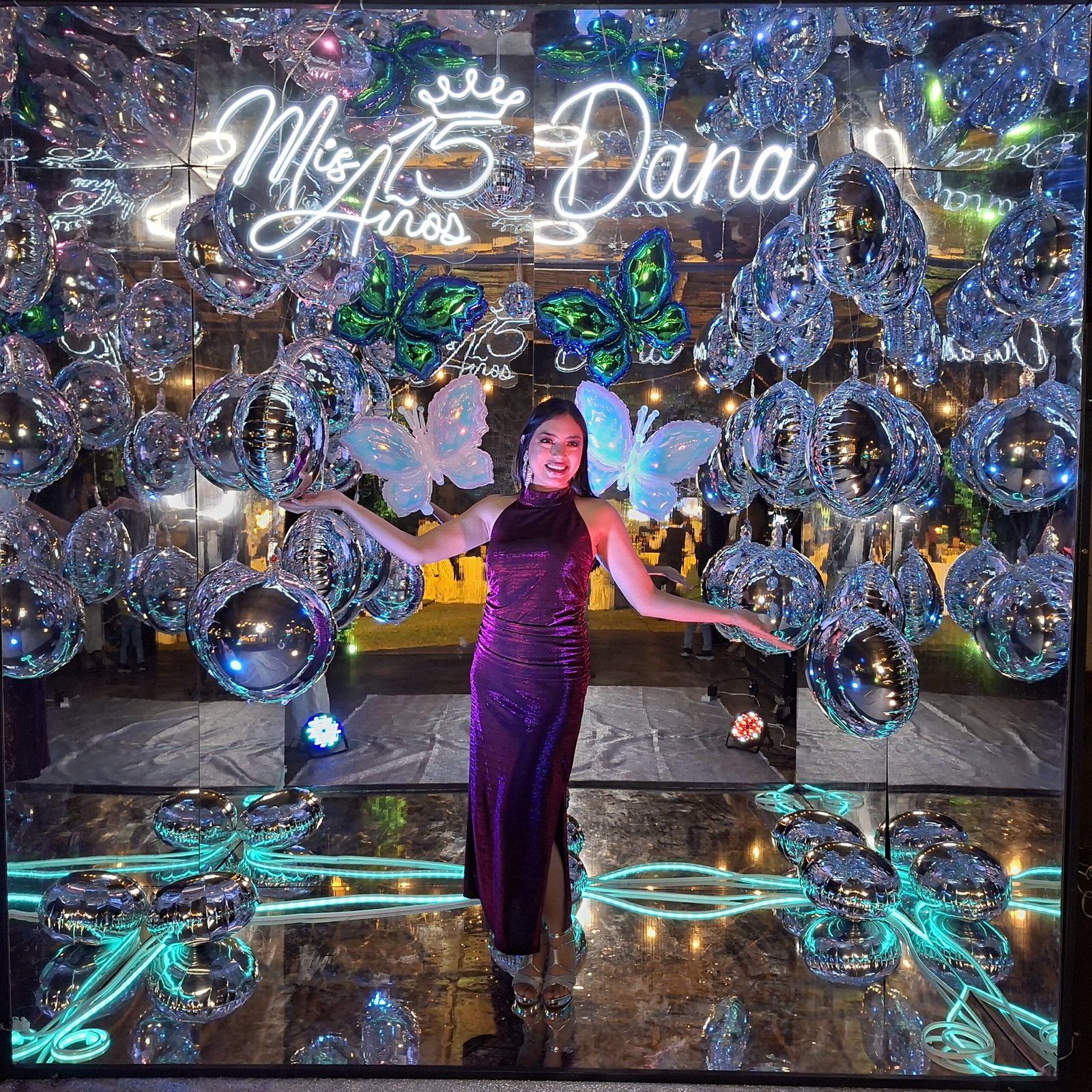 las luces son de neón RGB, multicolor, utilizamos también Par Leds RGB., creando una experiencia visual única.